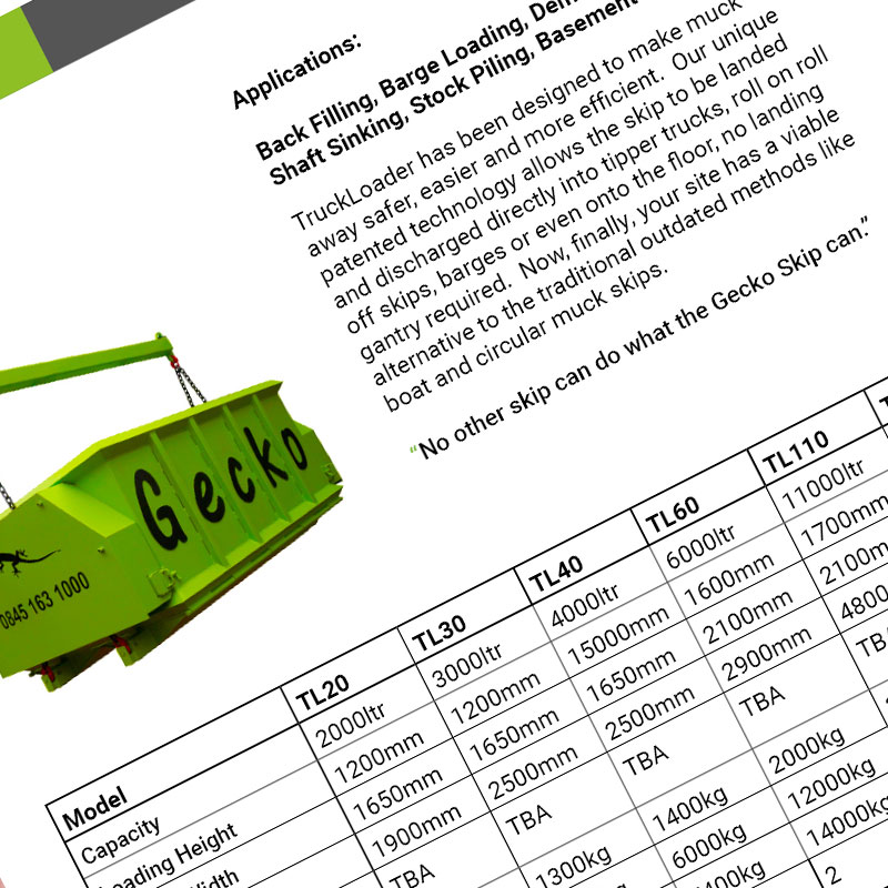 Gecko Innovations provide solutions to the construction industry. Our patented technology on our Truckloader range of skips enable us to supply skips that can discharge directly into tipper trucks, moxy trucks, barges or even the floor. The skips are discharged using a 100% failsafe remote control system ensuring no operatives need to be in the discharge zone. Gecko Skips are the essential choice for construction, demolition, shaft sinking, rail projects, back filling, stock piling and more. We can build a skip to match your cranes capacity.